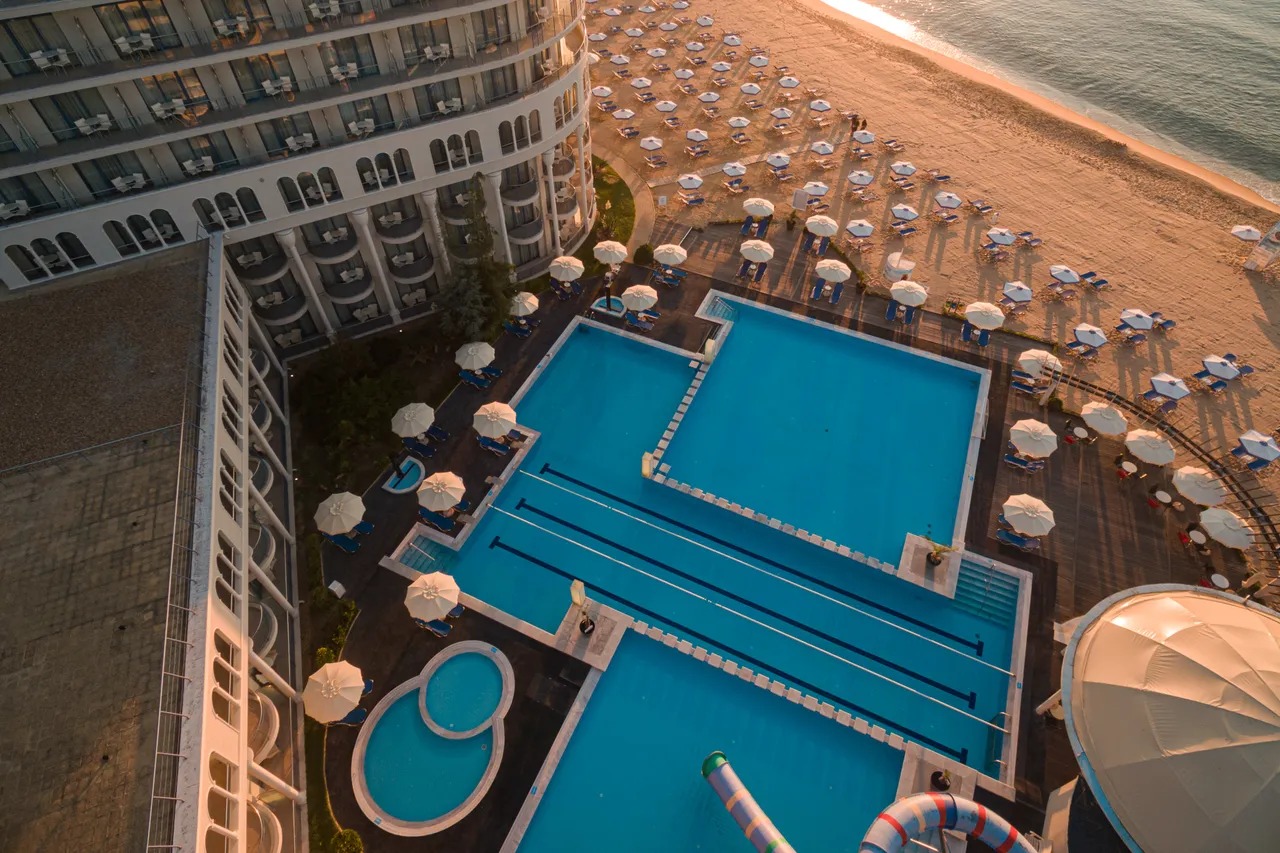 Piesočná pláž Ležadlá a slnečníky zdarma Hotel priamo pri pláži Bar na pláži Tobogány
