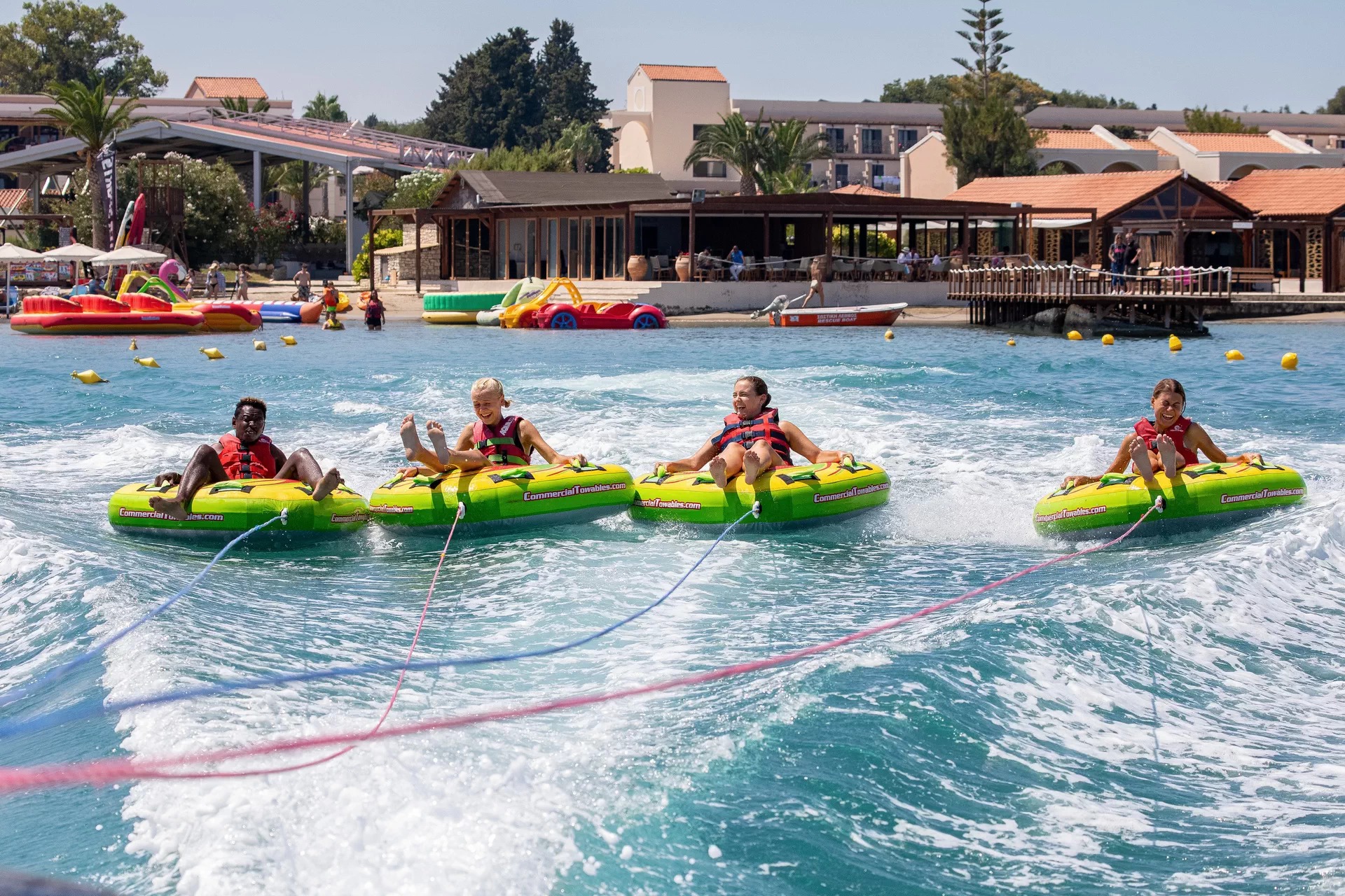 Piesočná pláž Ležadlá a slnečníky zdarma Hotel priamo pri pláži Bar na pláži Tobogány