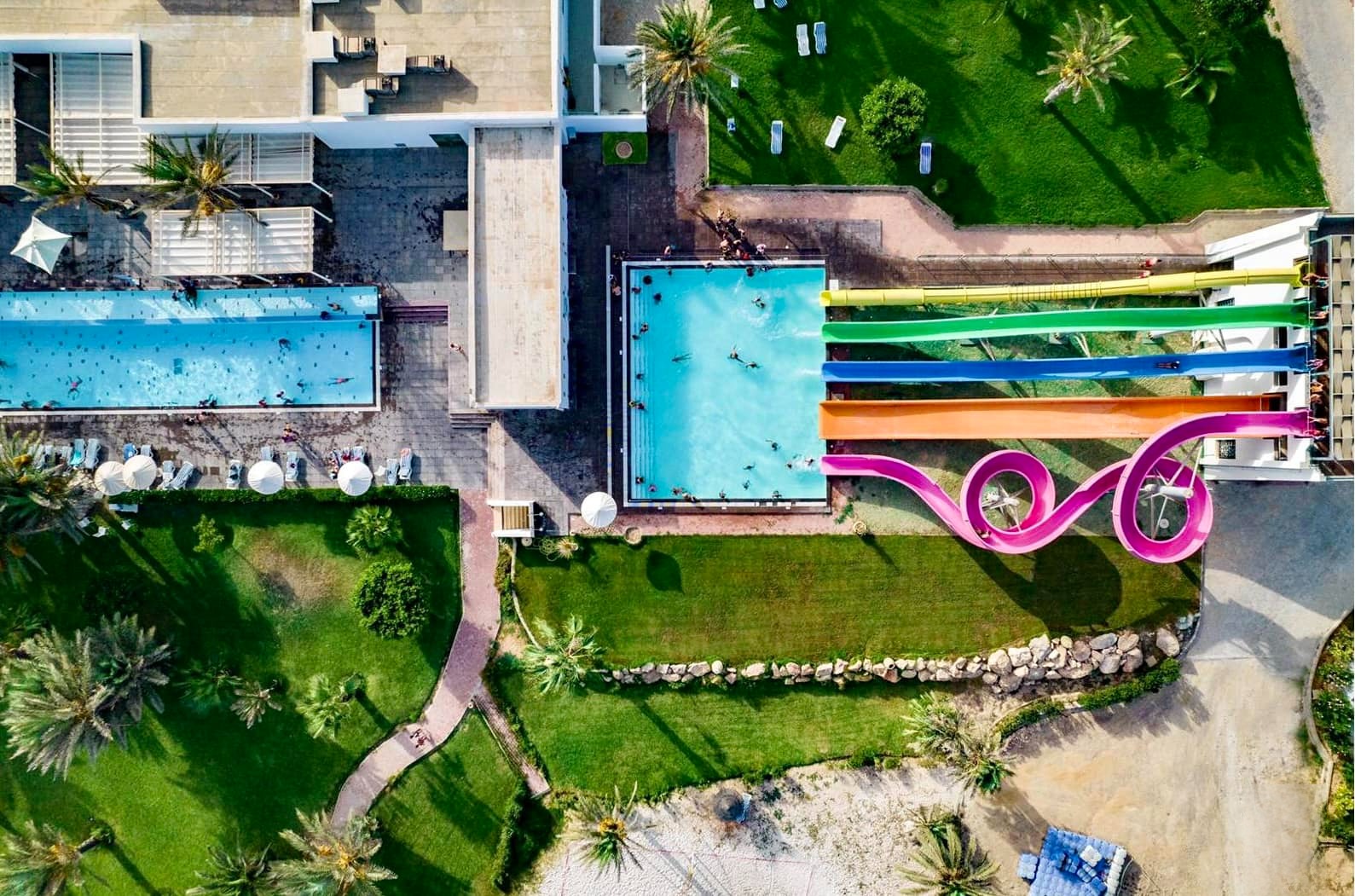 Piesočná pláž Ležadlá a slnečníky zdarma Hotel priamo pri pláži Tobogány Bar na pláži