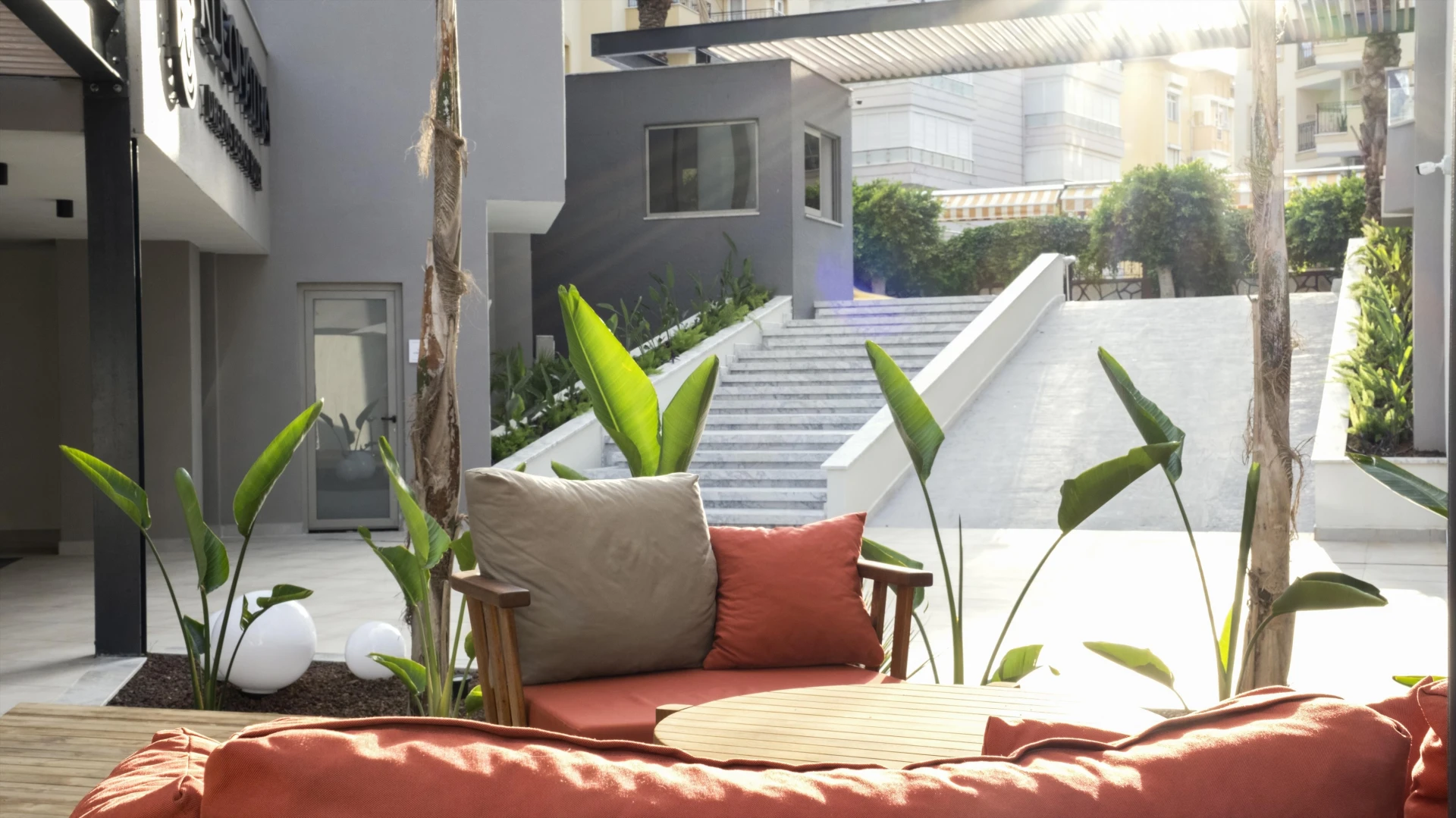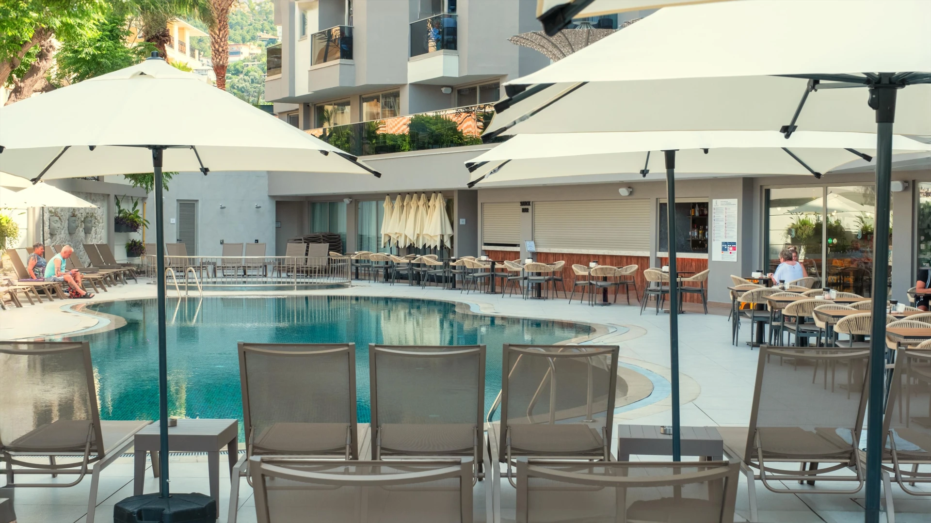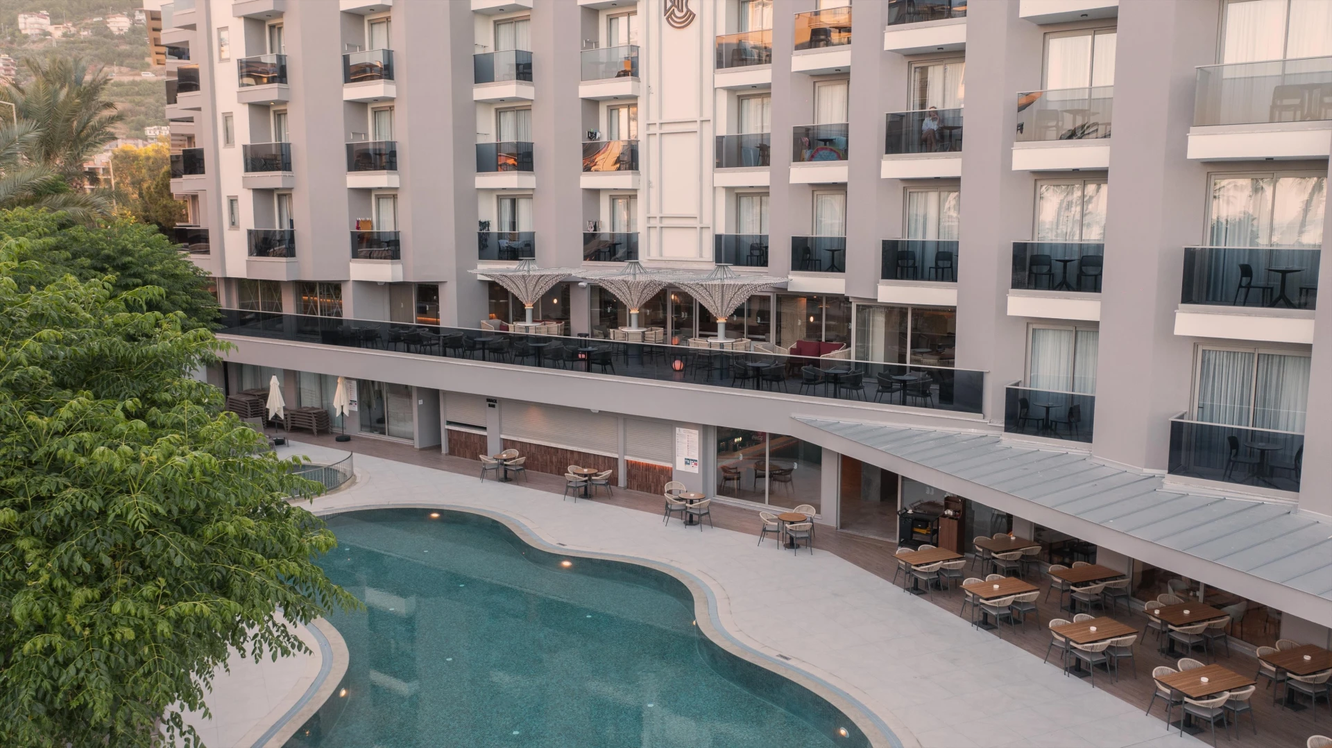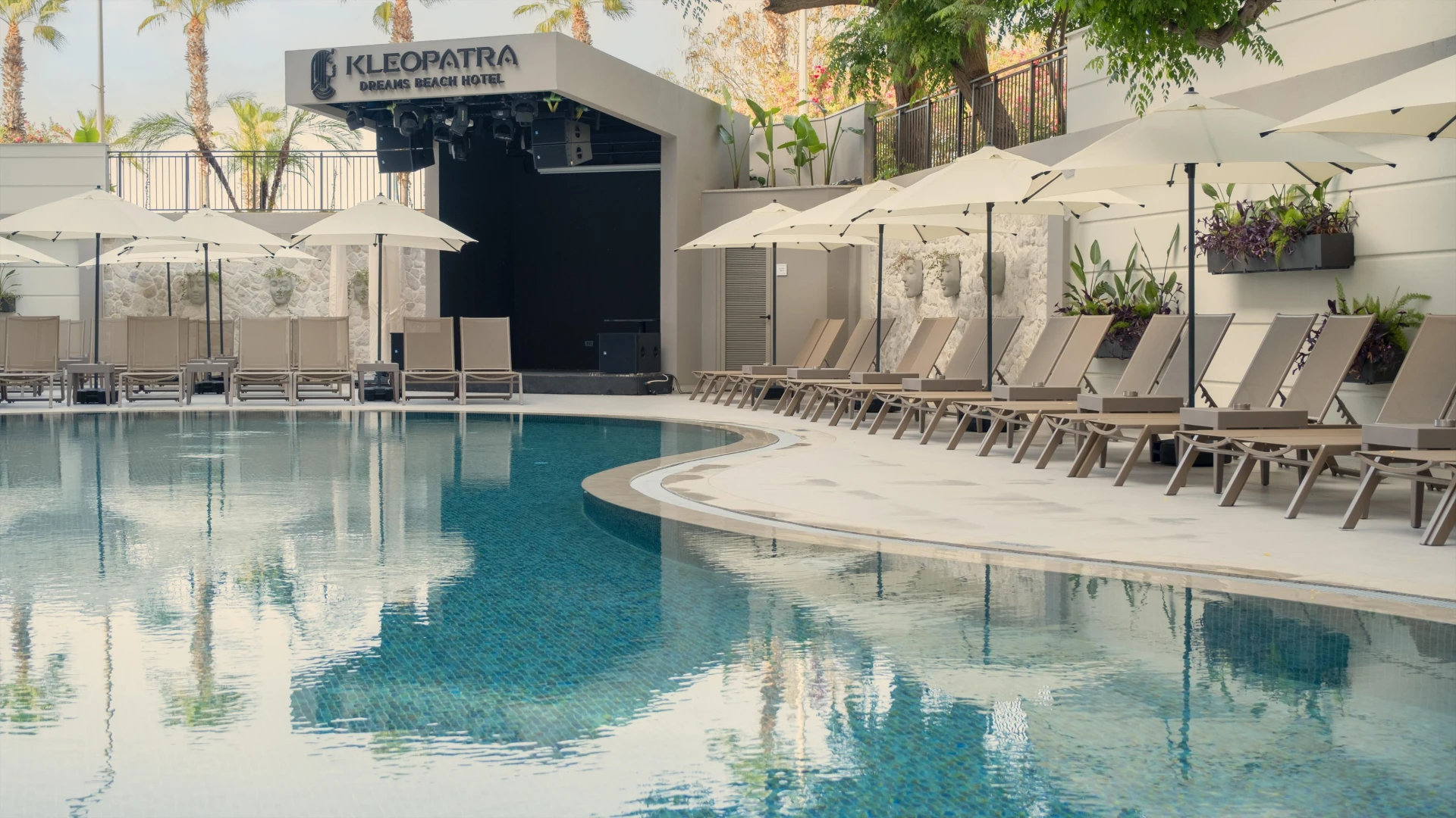 Hotel sa nachádza pri dlhej a obľúbenej piesočnatej Kleopatrinej pláži, ktorá je od hotela oddelená miestnou komunikáciou a pešou promenádou. Hostia si môžu na pláži prenajať ležadlá a slnečníky za poplatok a osviežiť sa v plážovom bare.