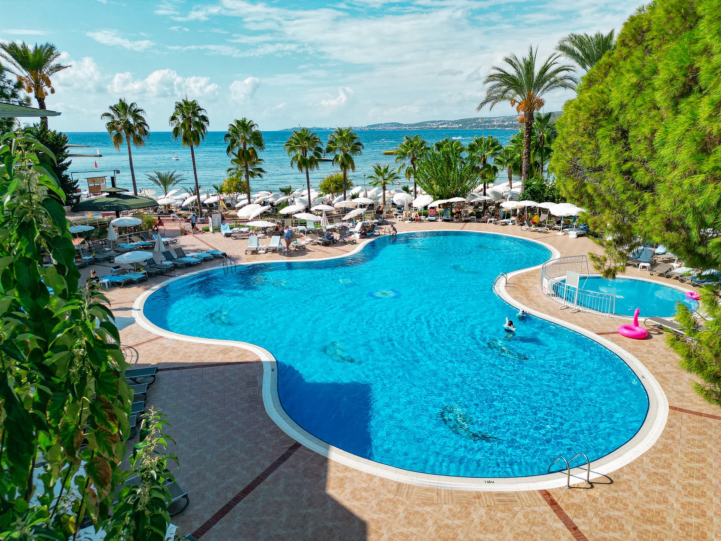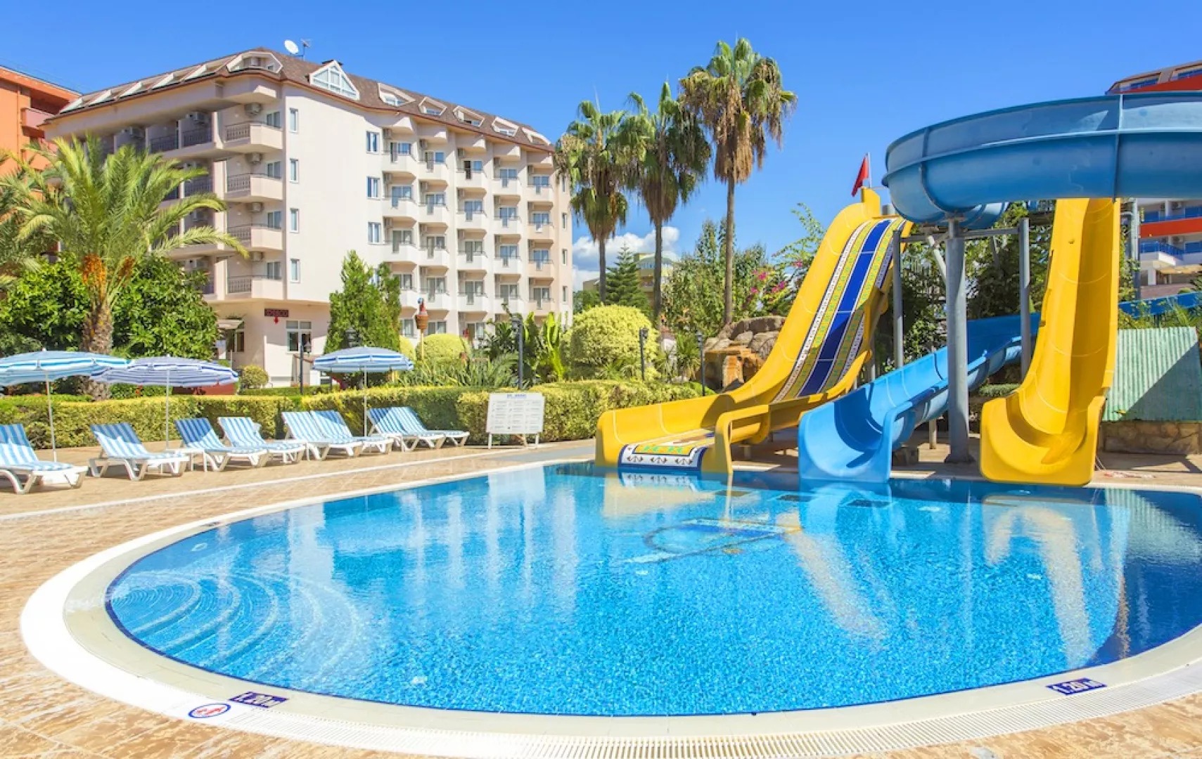 Piesočná pláž Ležadlá a slnečníky zdarma Hotel priamo pri pláži Bar na pláži Tobogány
